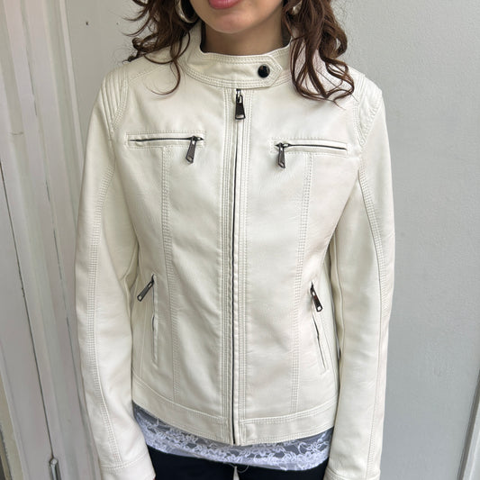 Weiße Lederjacke