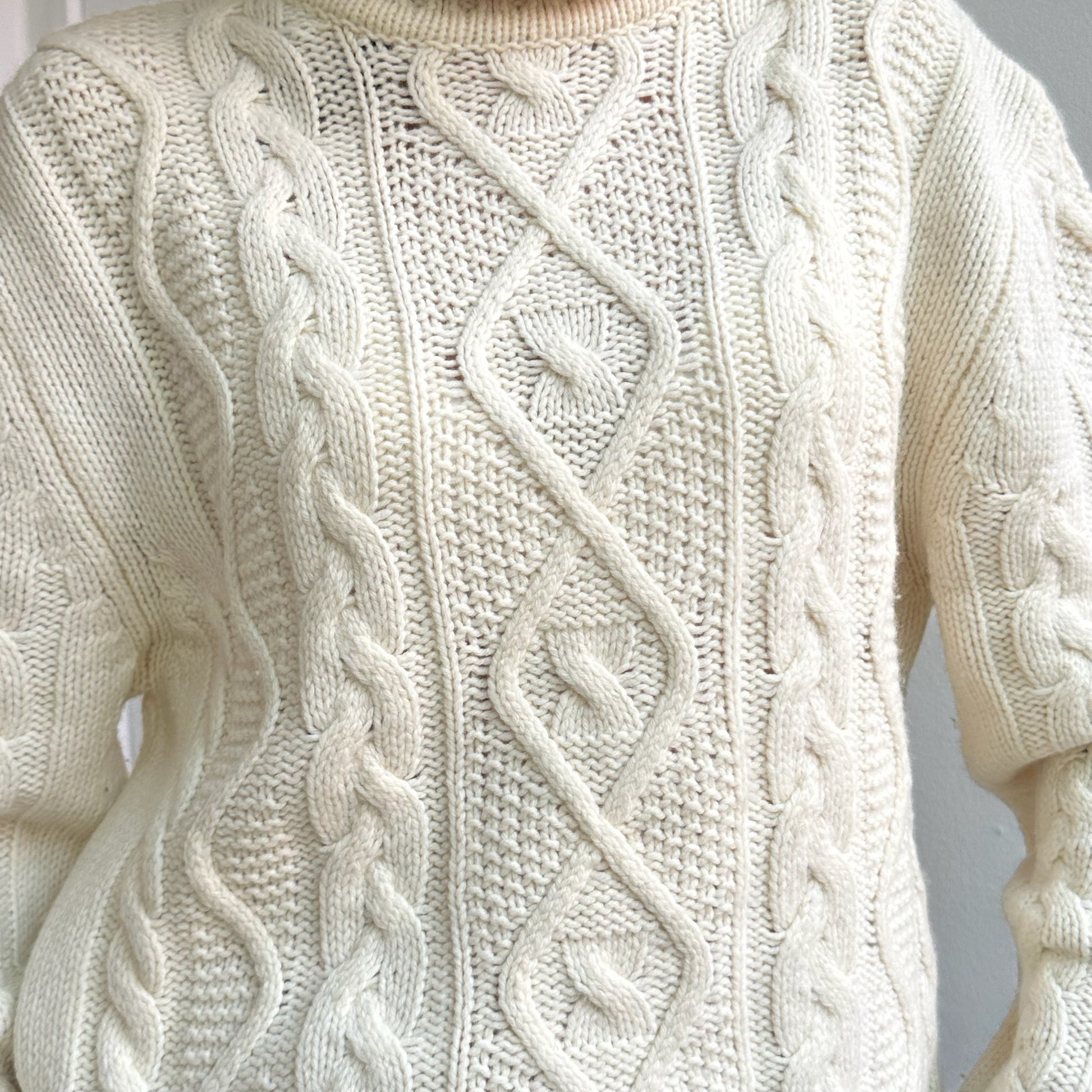 Weißer Strickpullover mit Rollkragen. Größe XL, passt jedoch bei S/M als Oversized-Look.