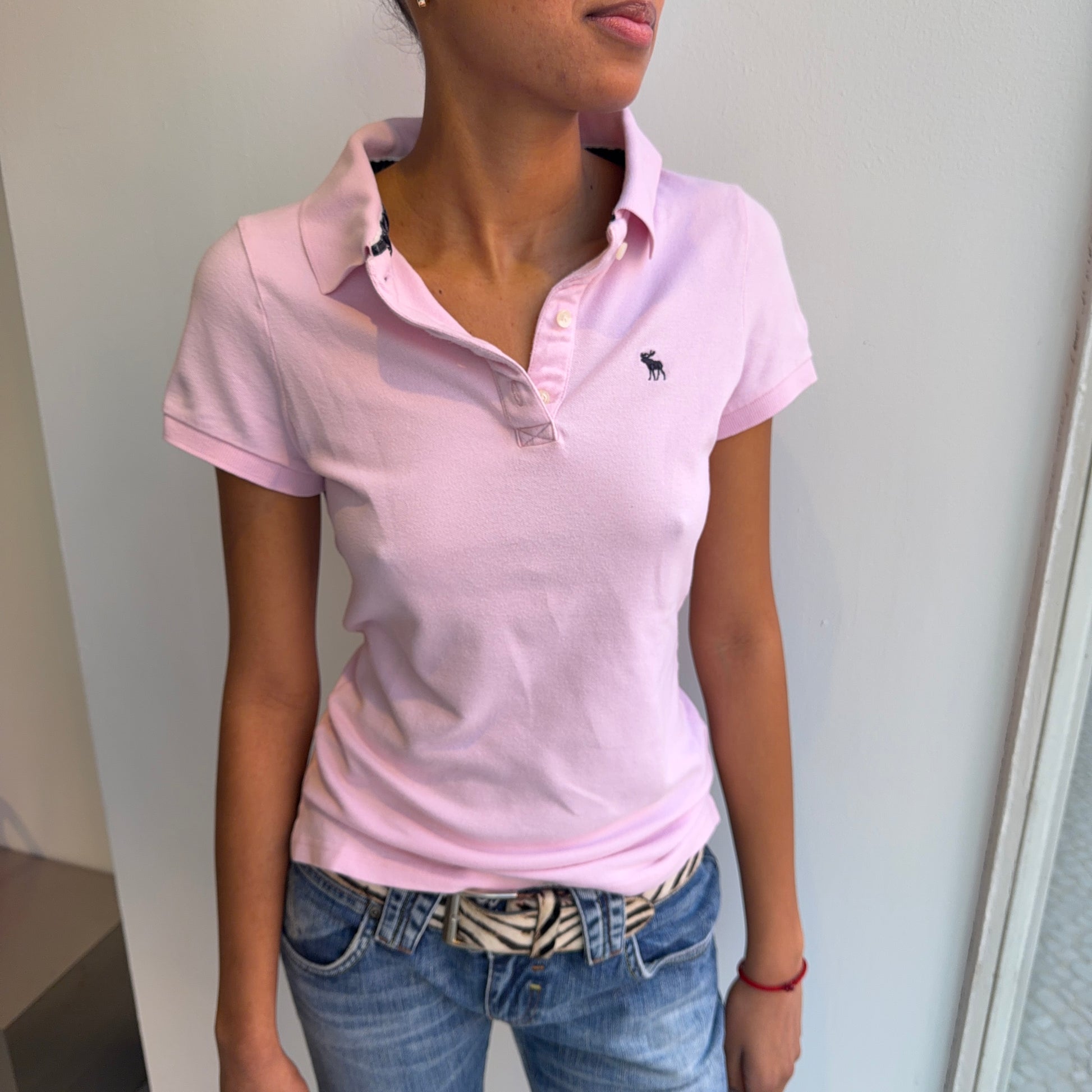 Pink Abercrombie & Fitch Polo T-Shirt. Size M.