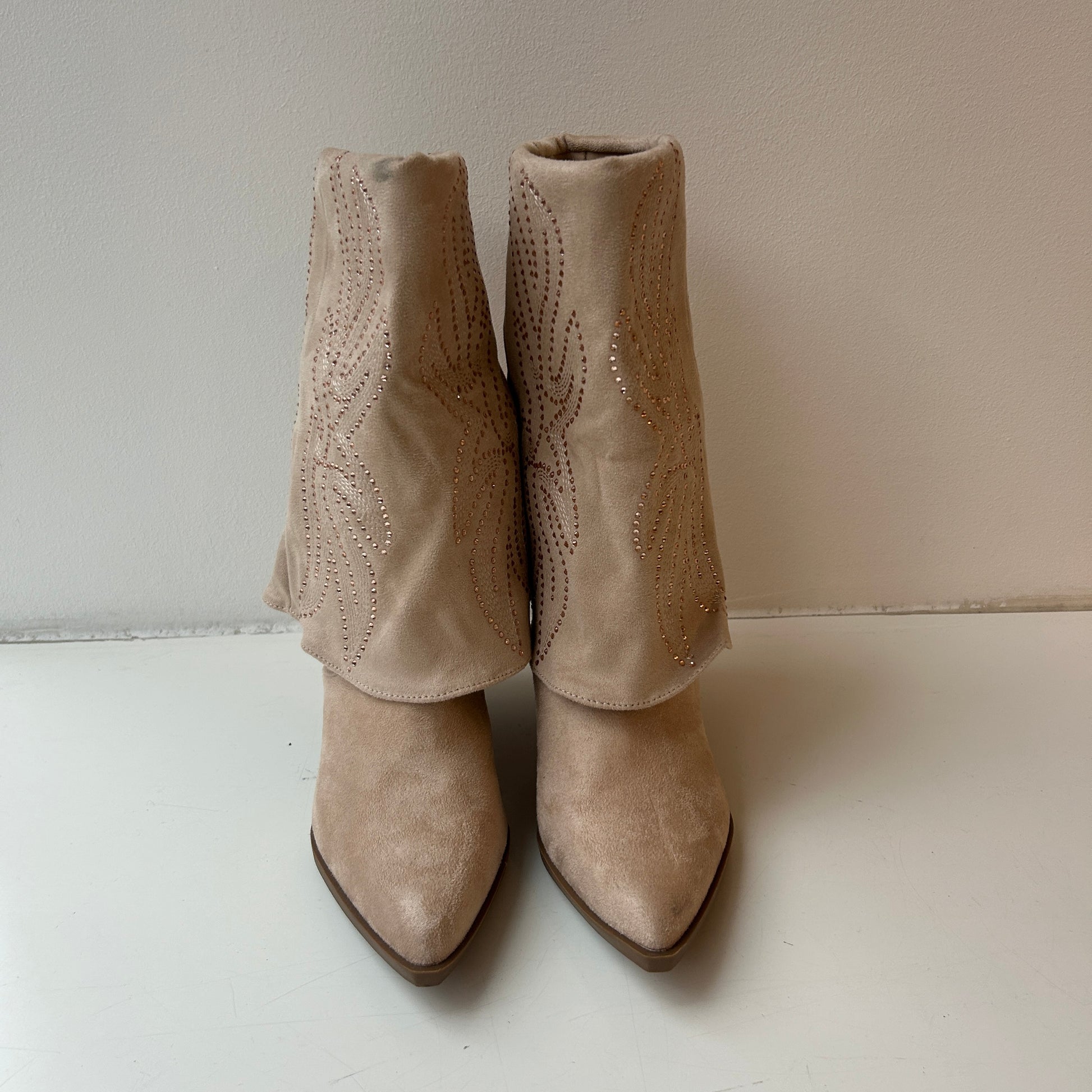 Beige boho boots with glitter detailing. Minor signs of wear, see pictures. Size 41.