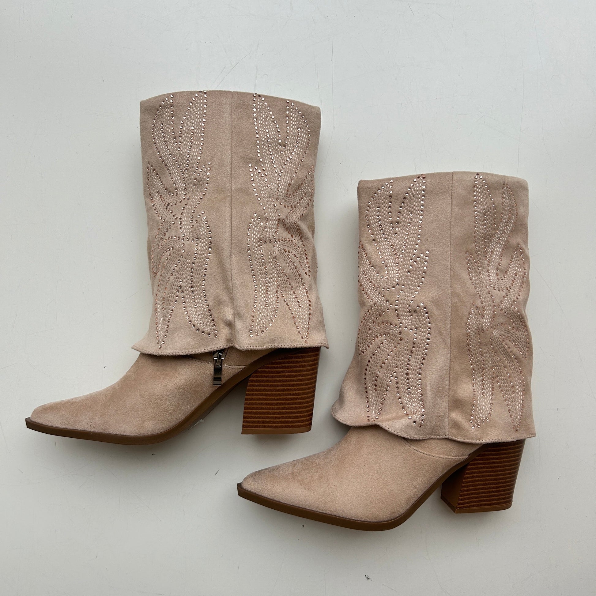 Beige boho Stiefel mit Glitzer Details. Leichte Gebrauchsspuren, siehe Fotos. Größe 41.
