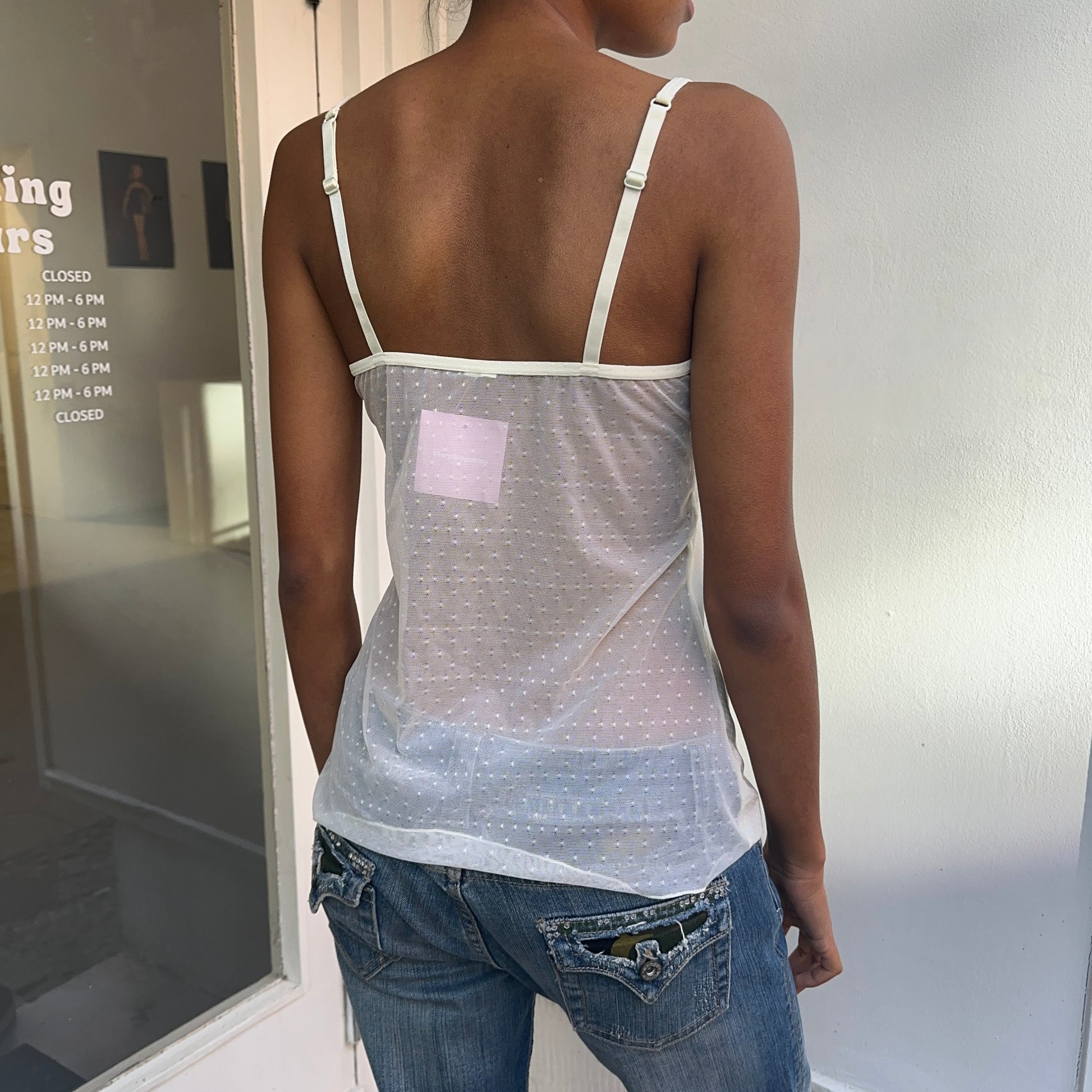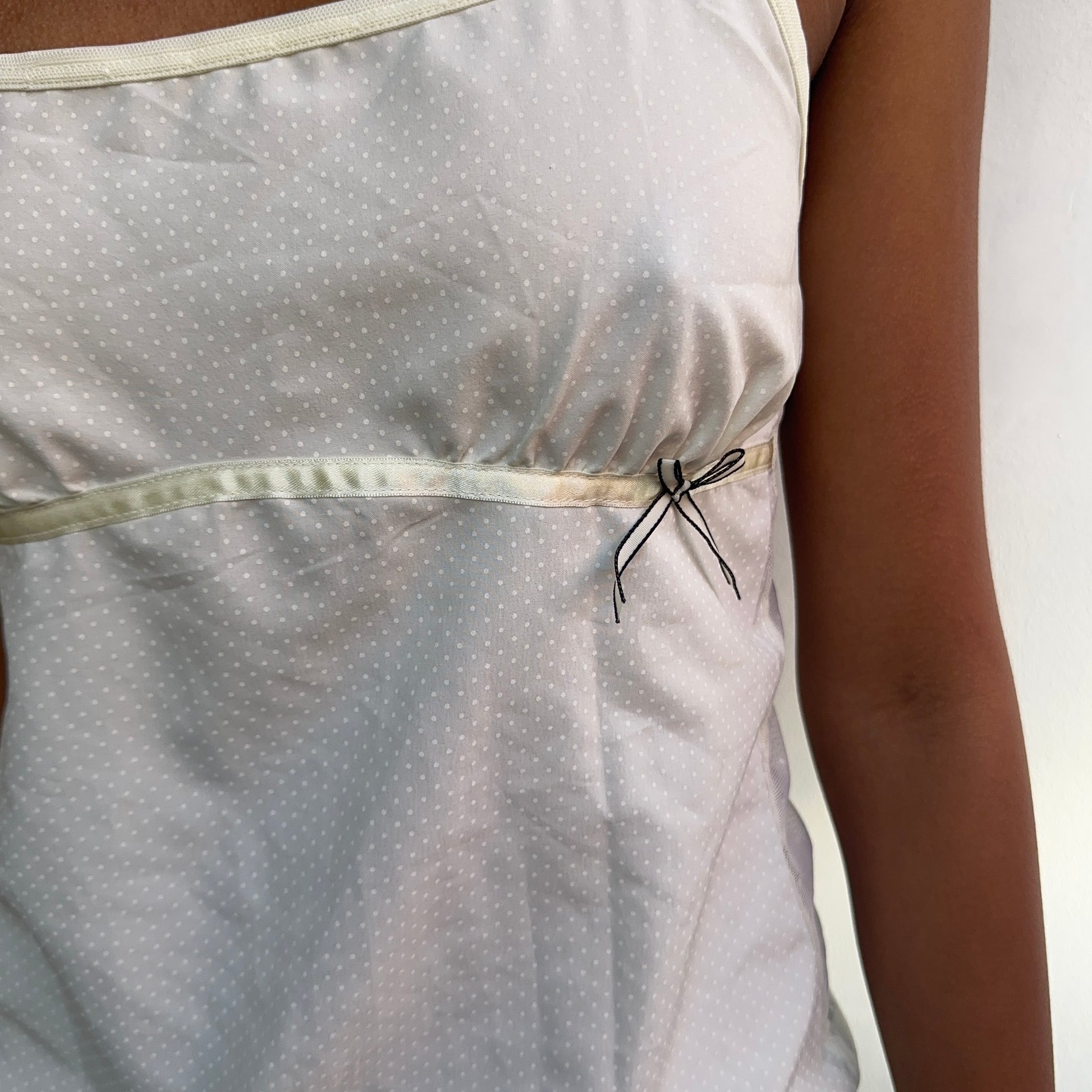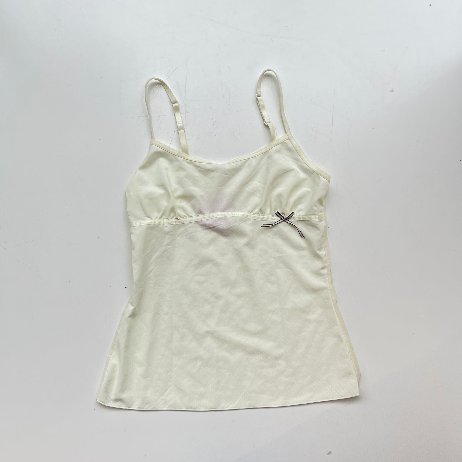 Cream polka dot cami with little black and white ribbon. Sheer back piece. Size M.