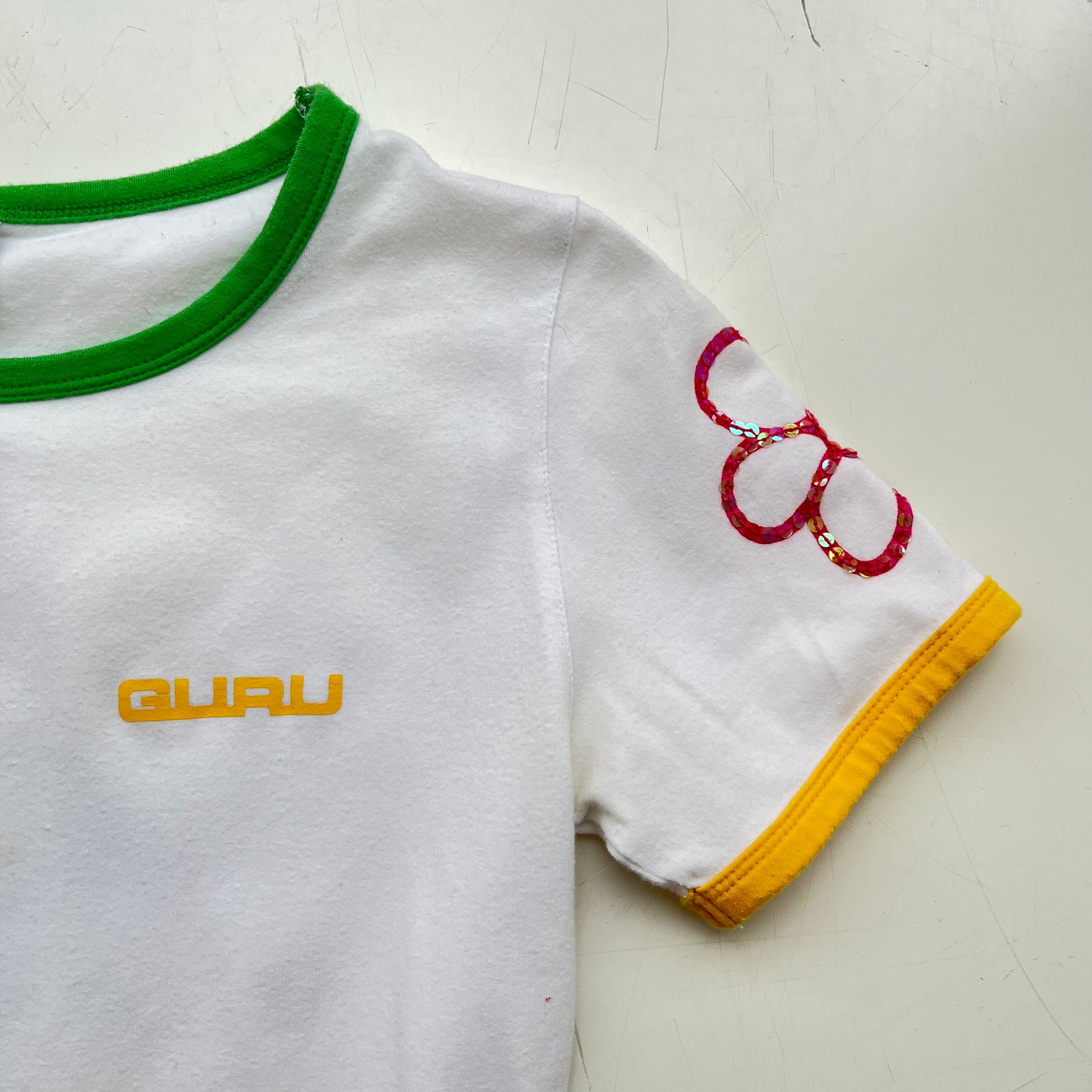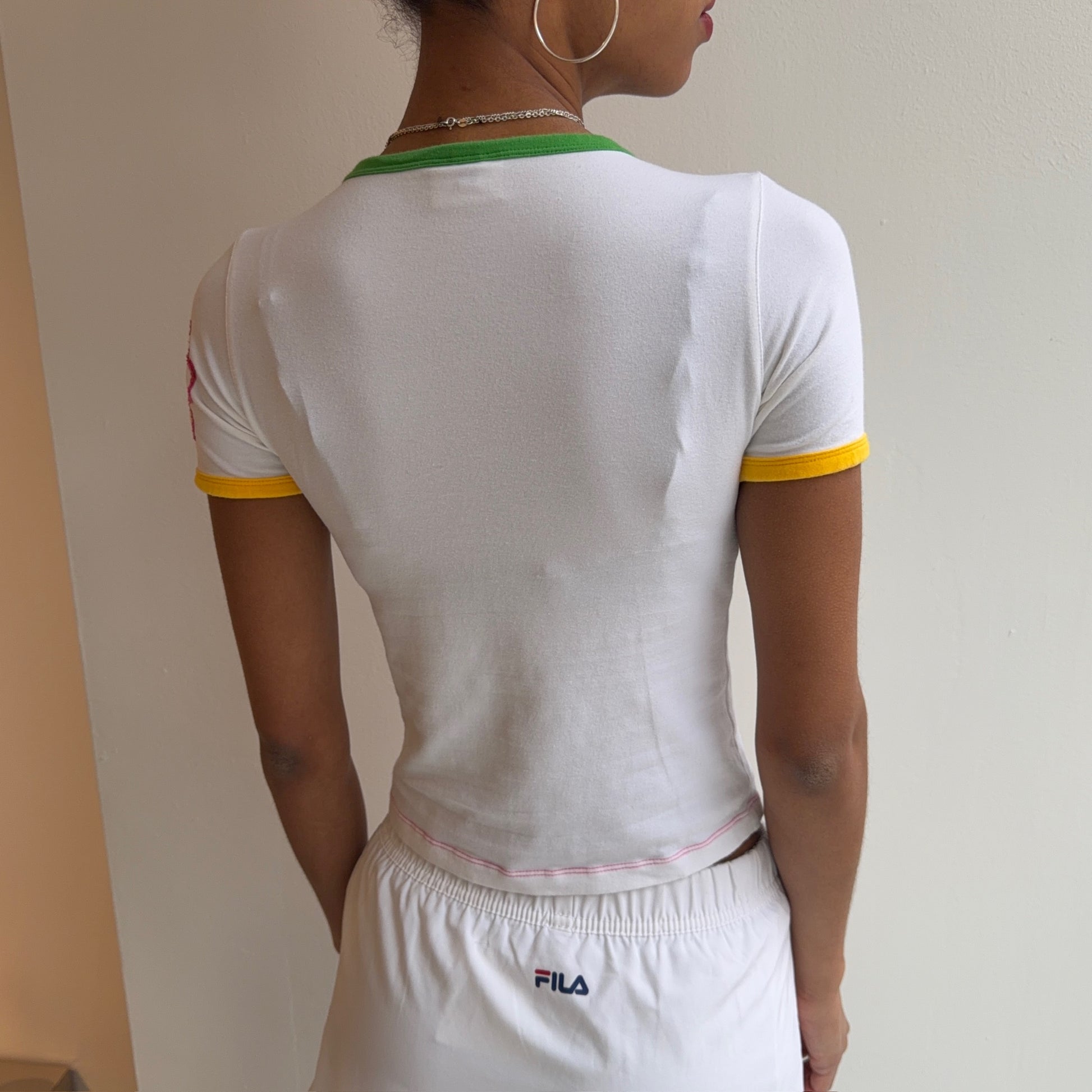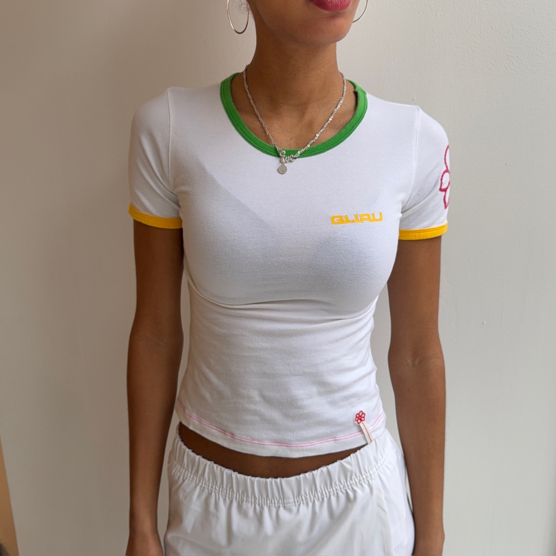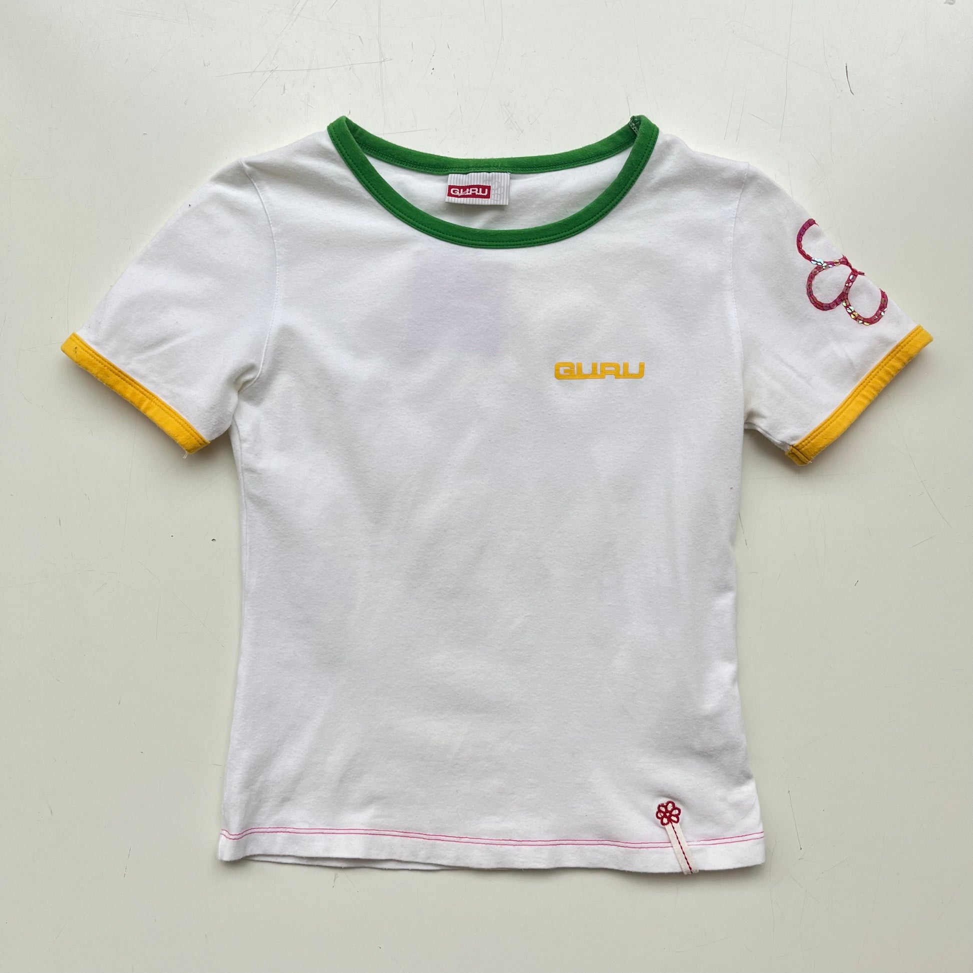 White baby tee with flower embroidery. Size XS/S.