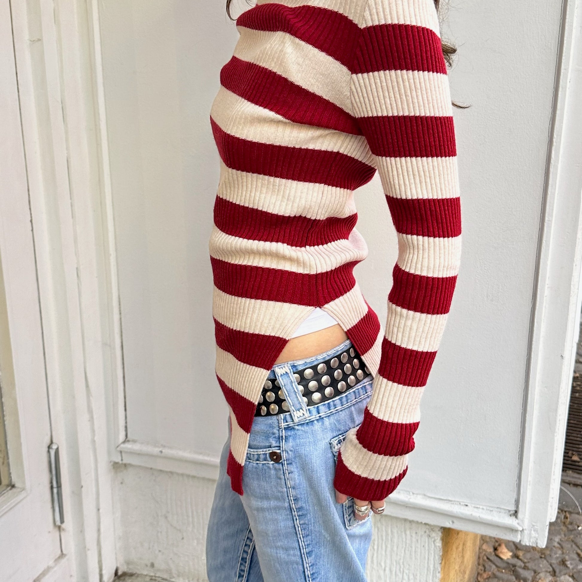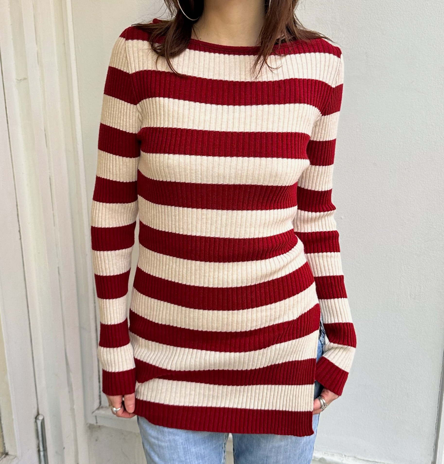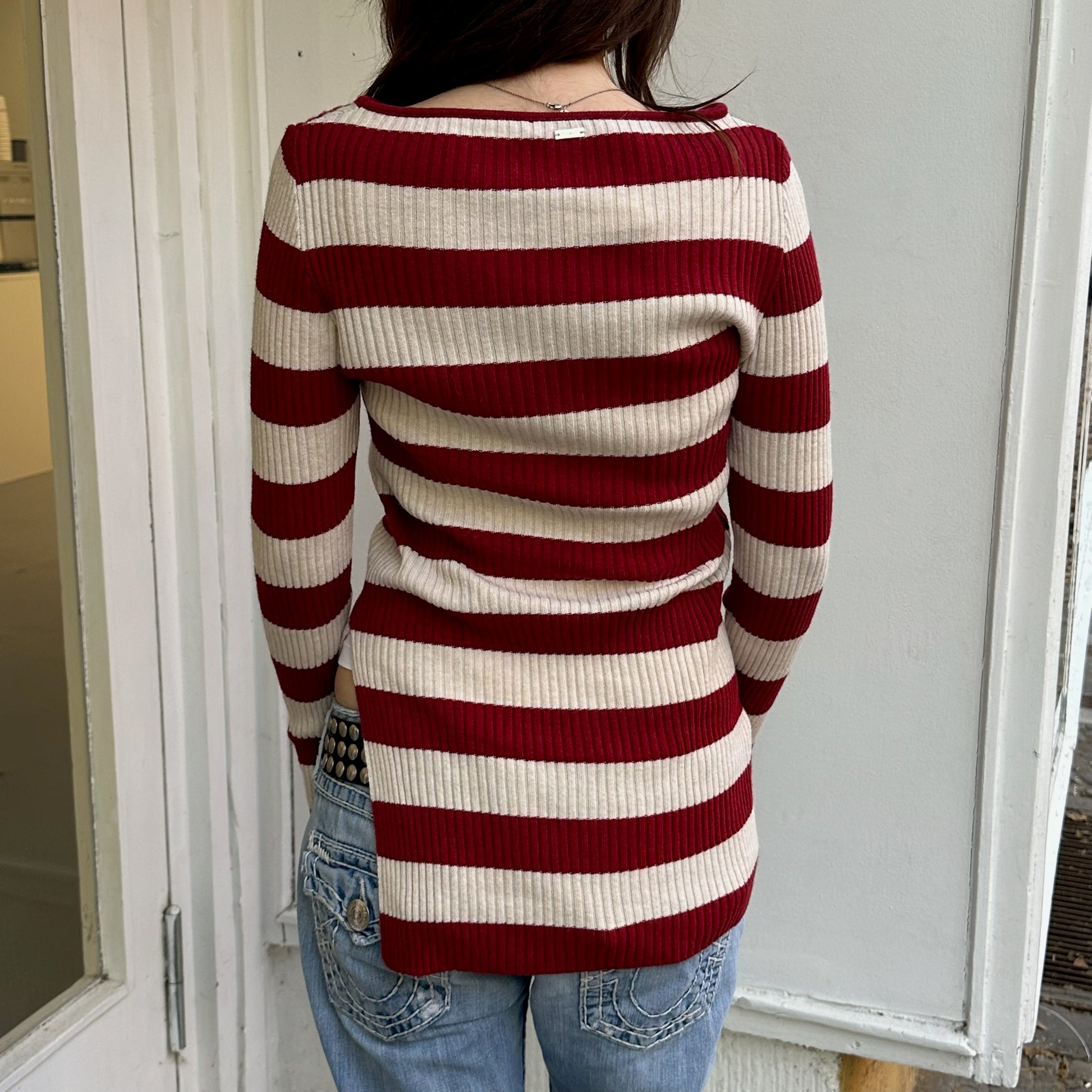 gestreiftes Ripp-Top von der Marke Liu Jo mit Schlitz an der Seite. Größe M.