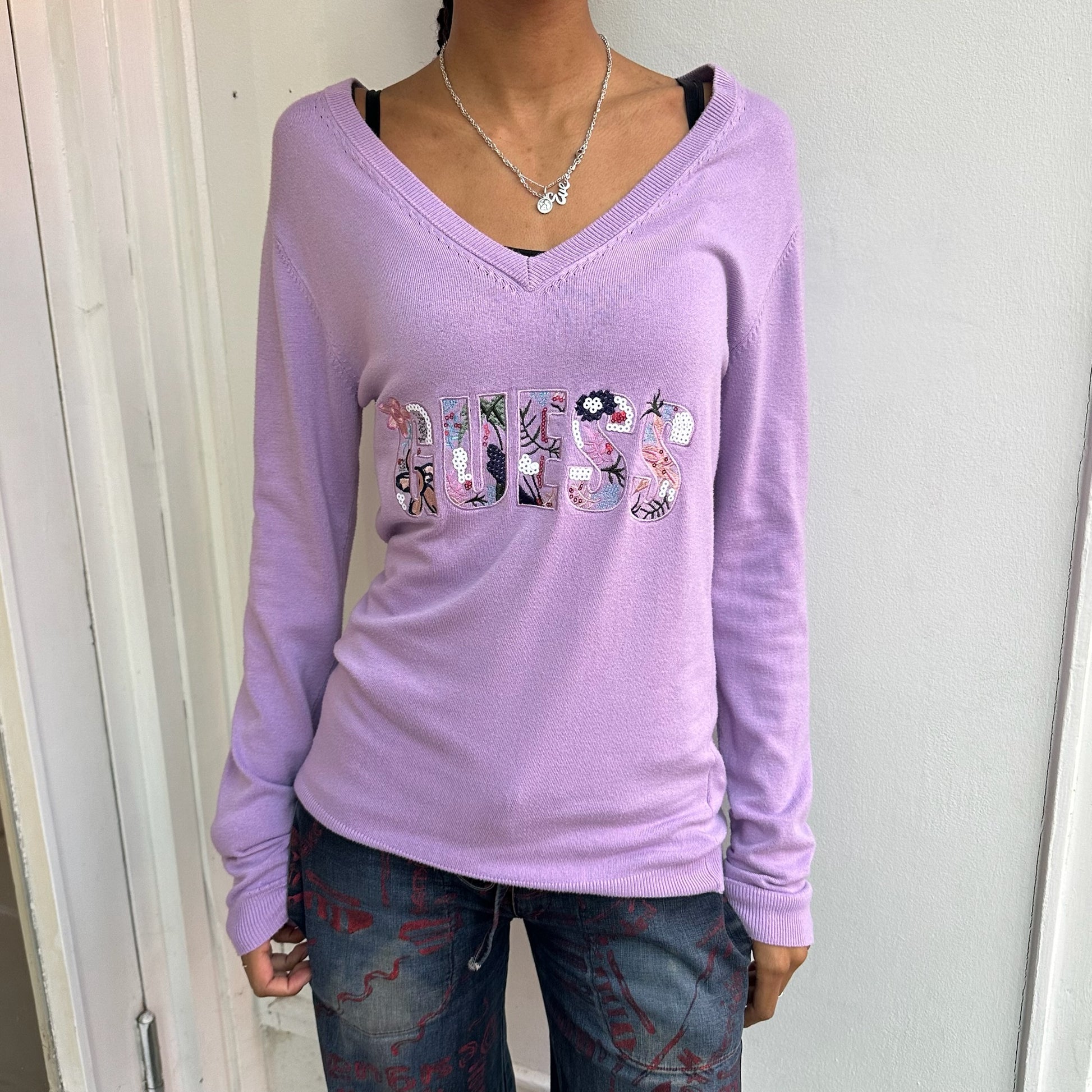Lilafarbener Pullover von der Marke Guess. Größe S/M.