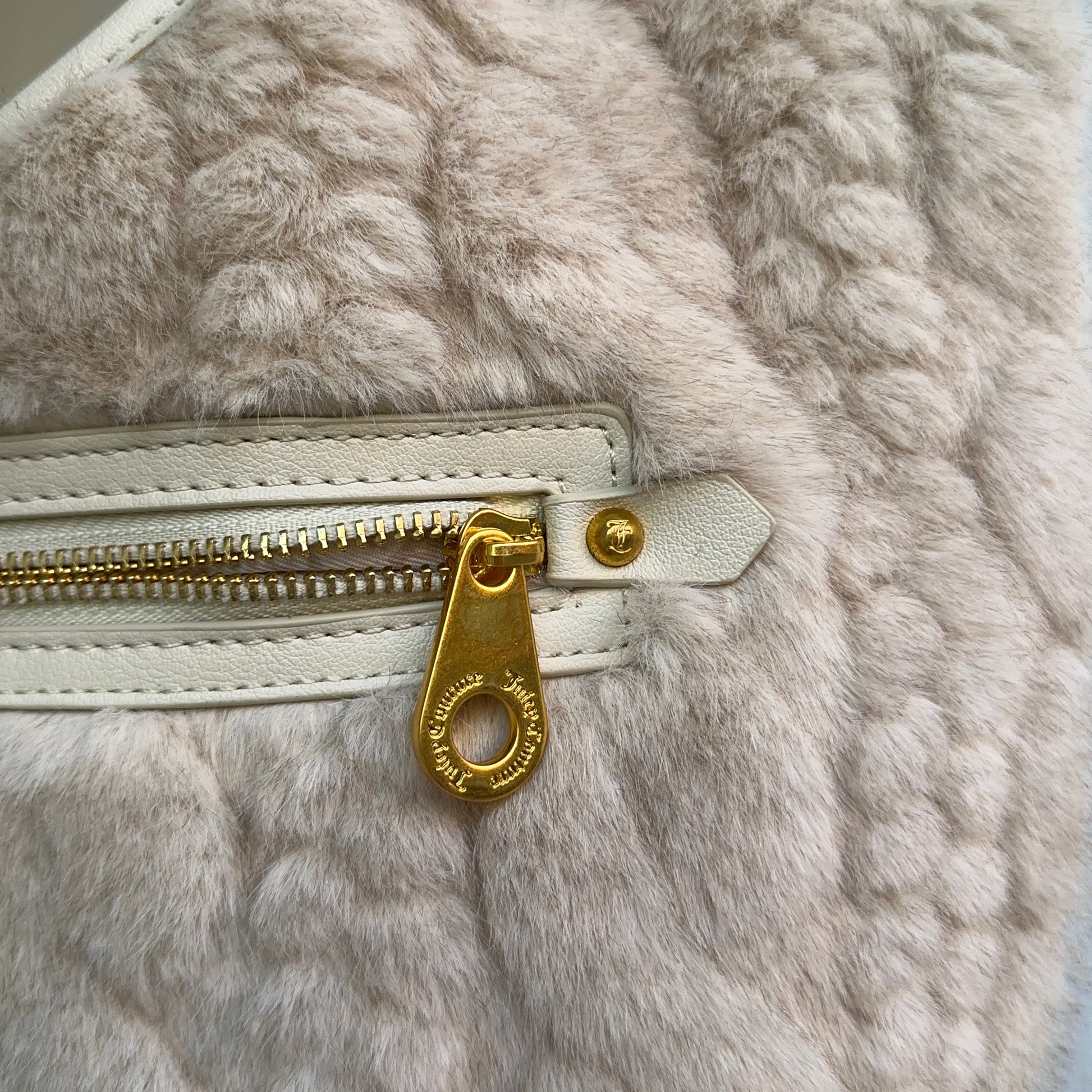 Faux-fur Juicy Couture handbag with gold coloured metal details and a detachable purse.