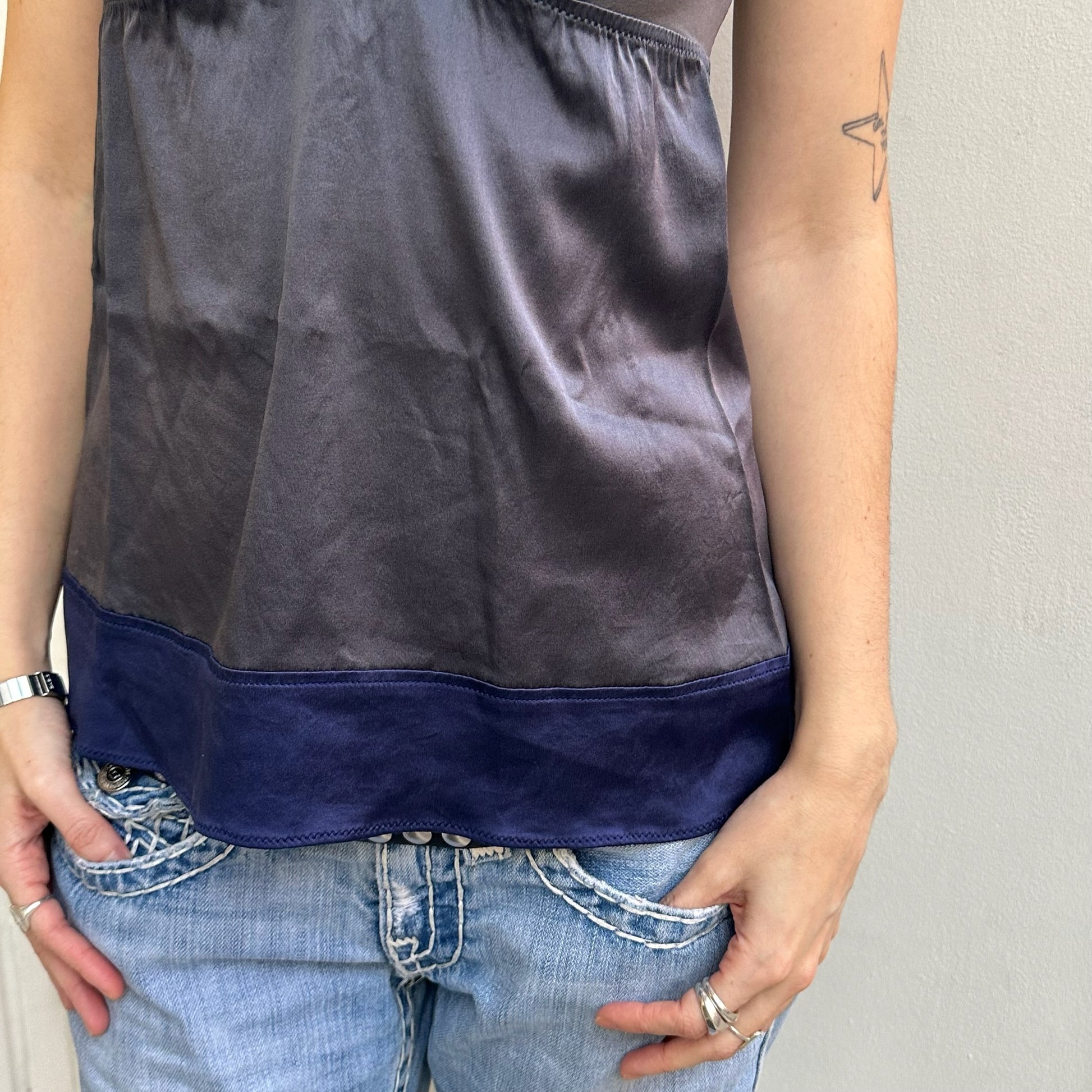 Graues Cami-Top der Marke MARNI mit blauen Saum-Details. Größe S.