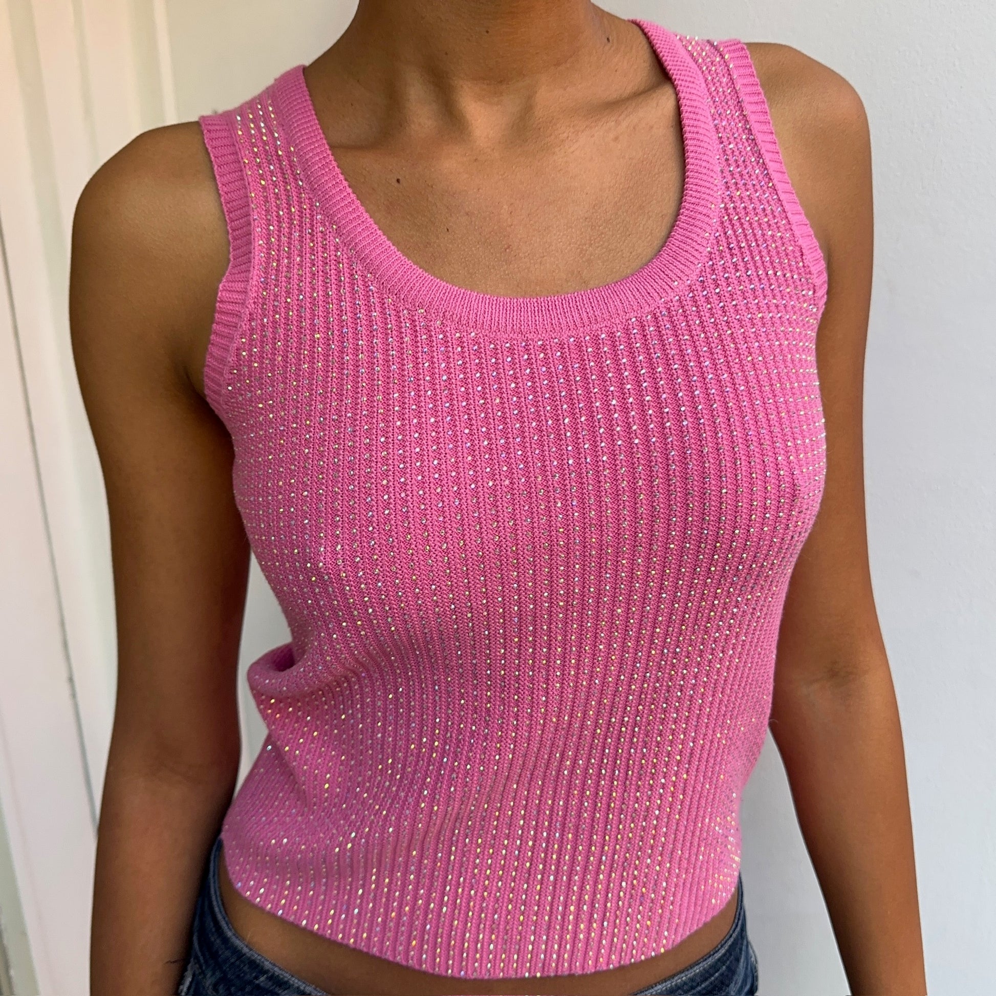 Pink vest top with sequins. Size M.