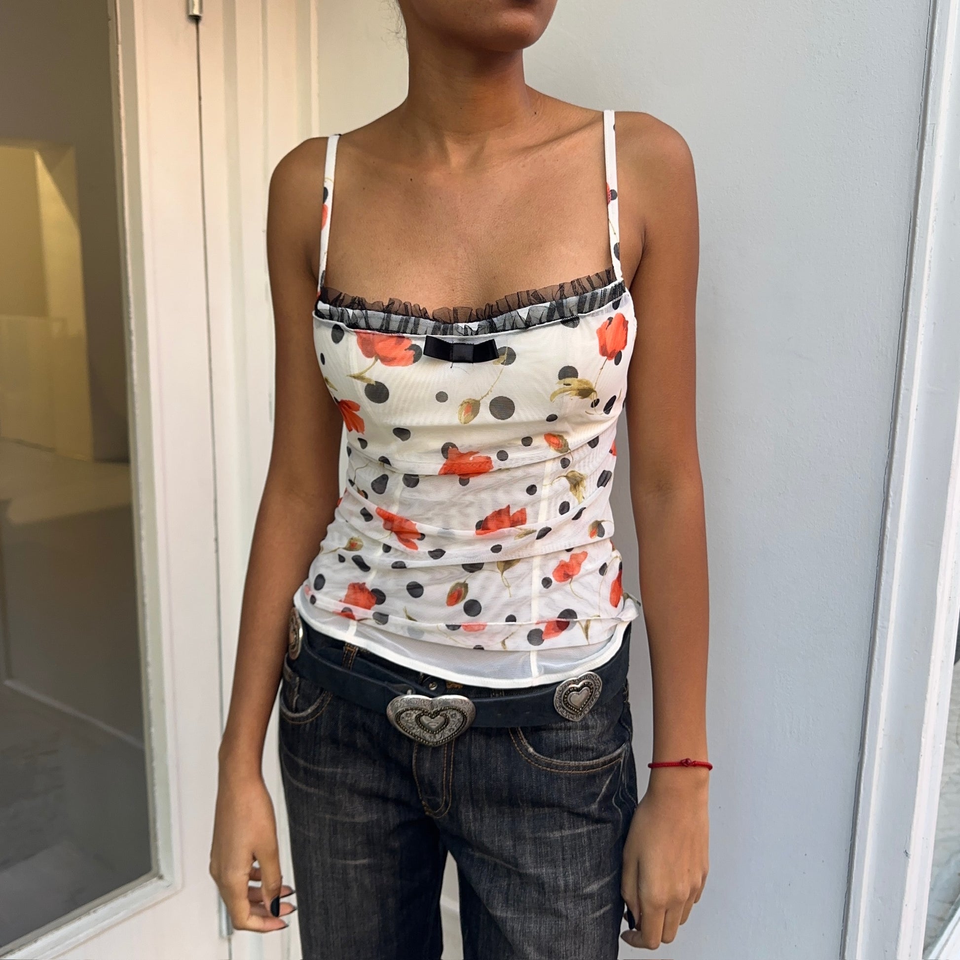 Weißes Polka-Dot-Top mit gepolsterten Cups in Größe C. Größe S.
