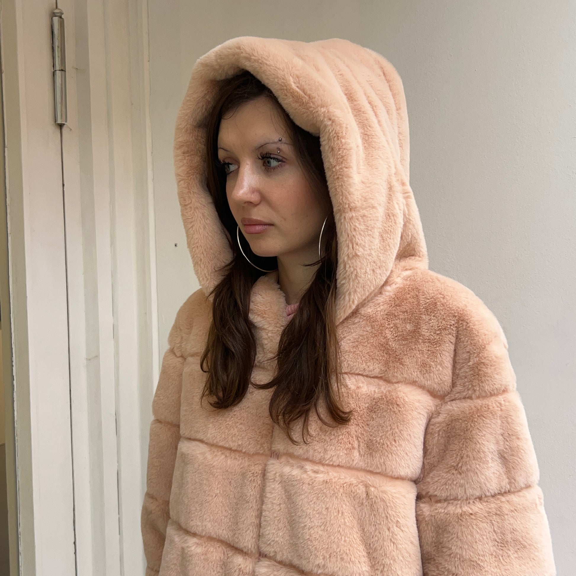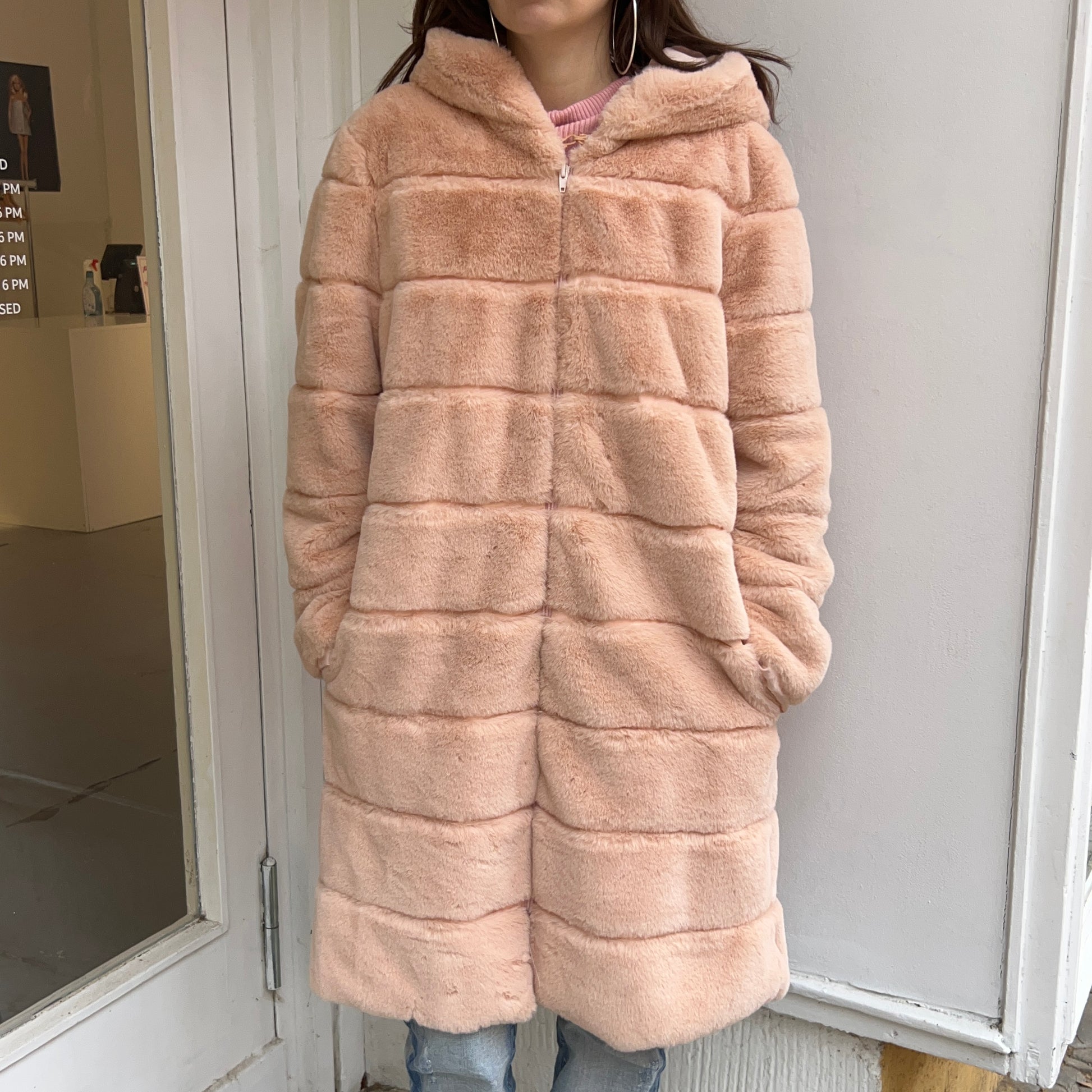 Rosafarbener Fellmantel. Größe M.