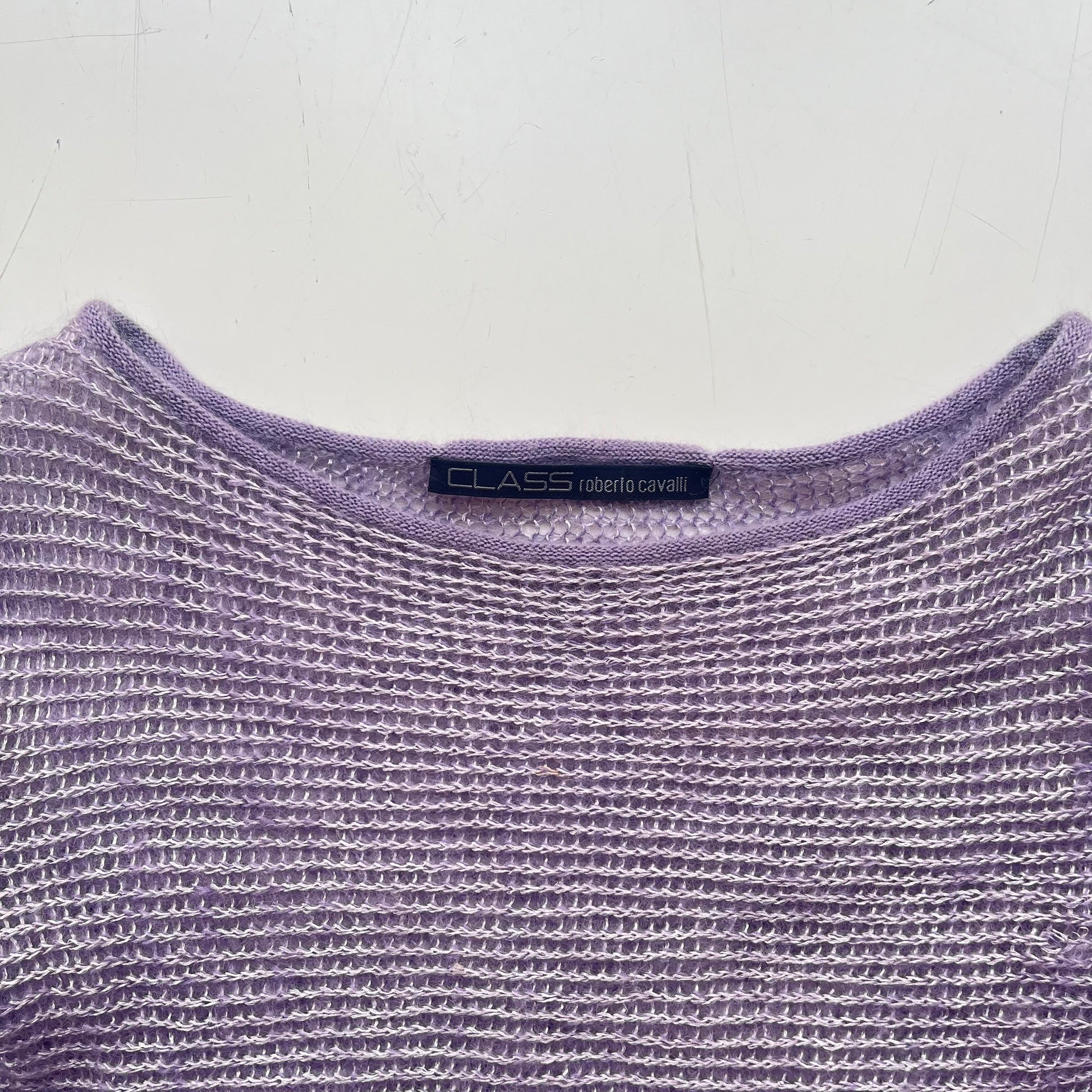 Lila Ombre-Strickpullover der Marke Roberto Cavalli aus Mohair-Mischung. Größe S.