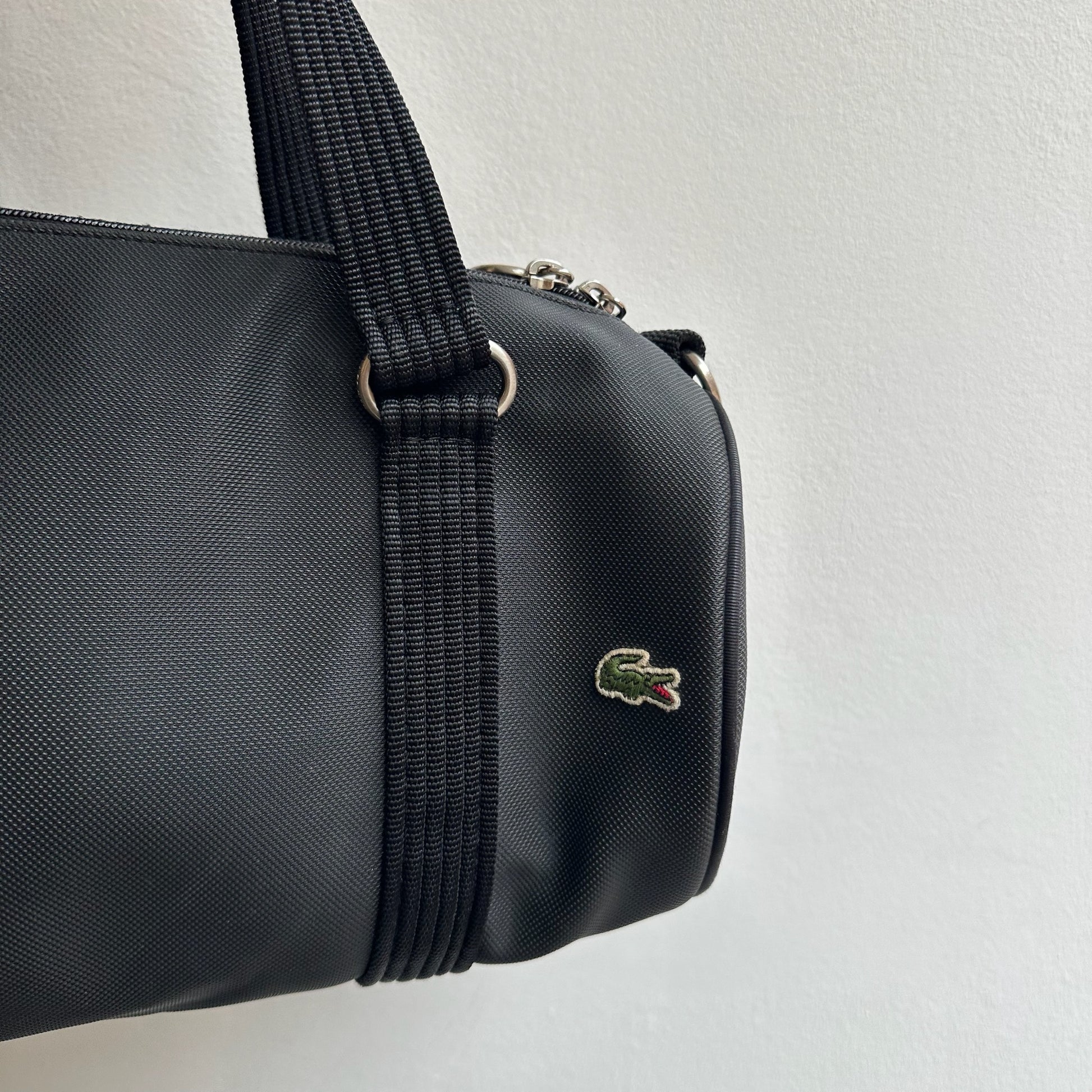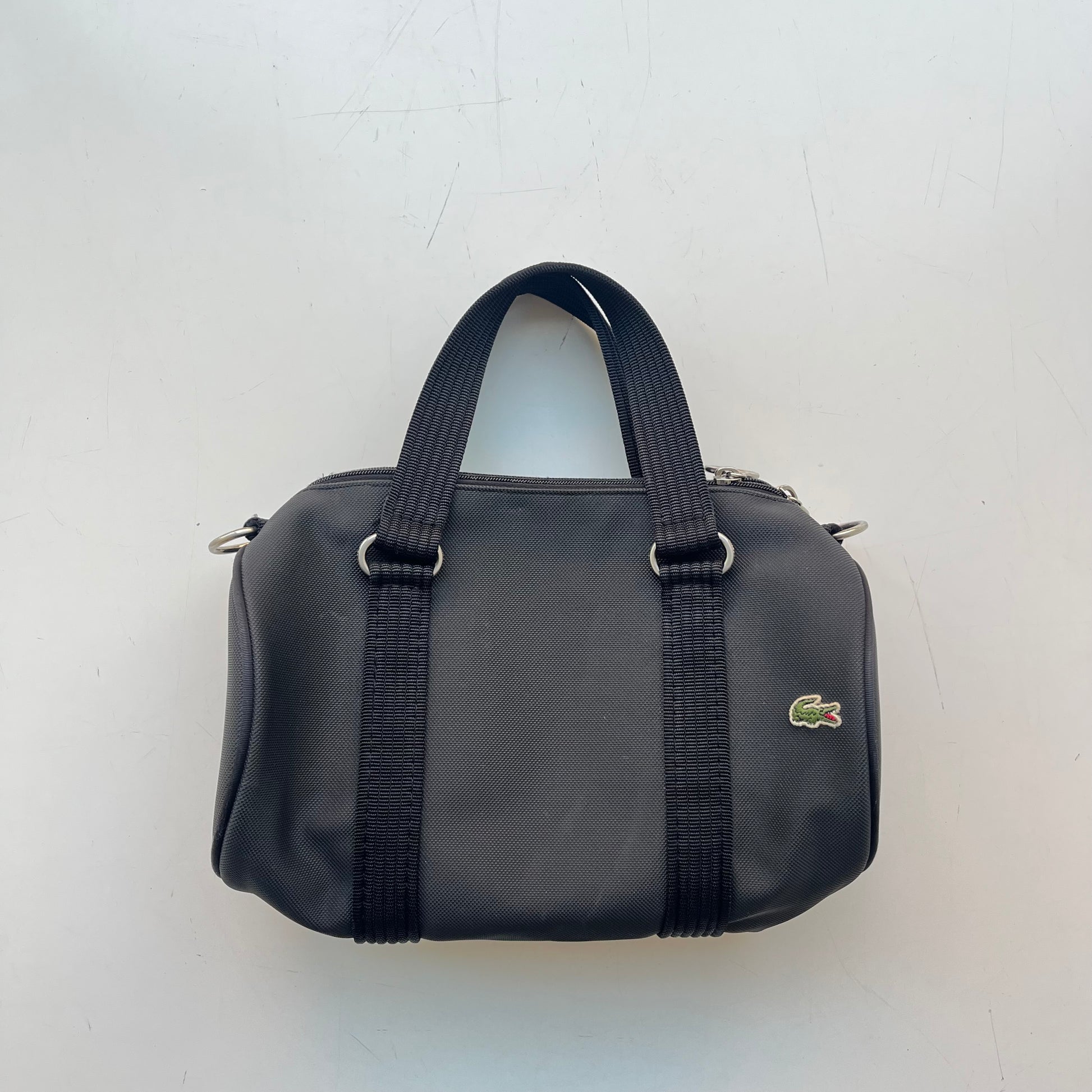 Dunkelgraue Lacoste Mini-Duffel-Tasche.