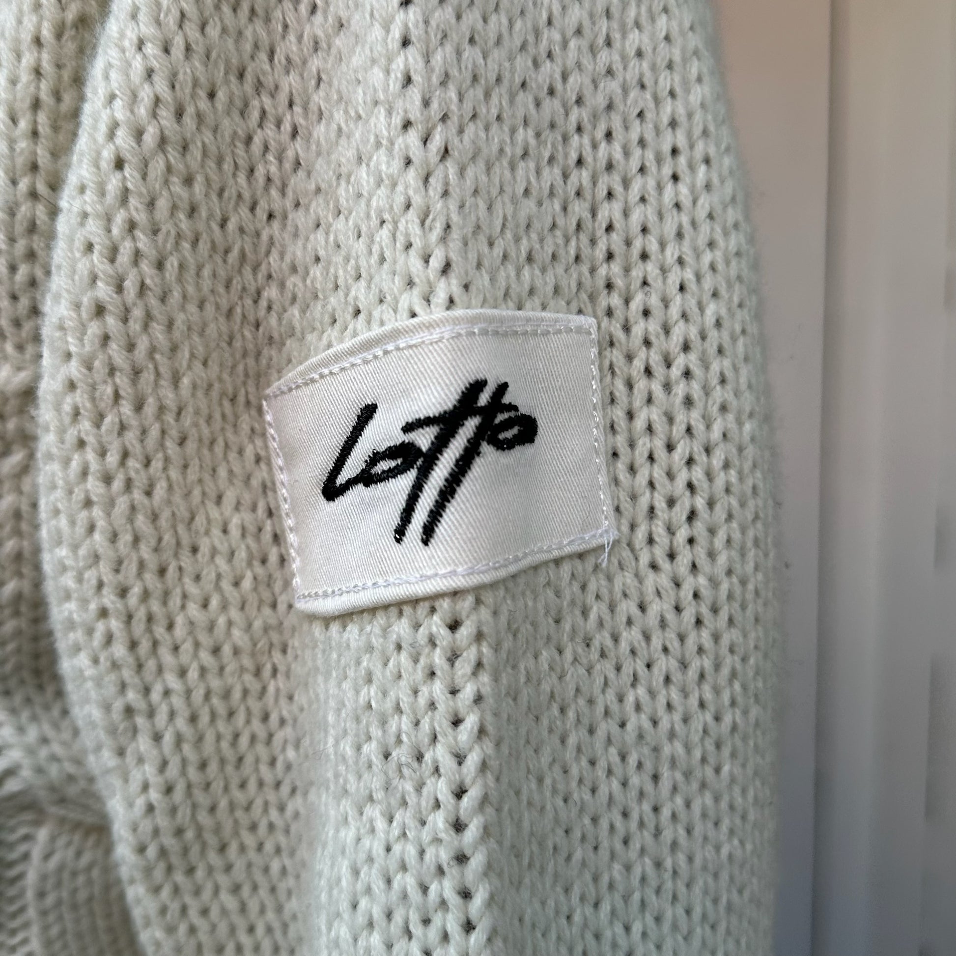 White knitted turtleneck sweater with button details. Size M.